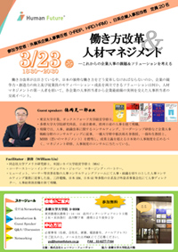 働き方改革が注目さている中、日本の独特な働き方をどう変革しなければならないのか、企業の競争力・創造力の向上及び従業員のモティベーション・成長を両立できるソリューションは何か、人材マネジメントの第一人者を招いて、各企業の人事担当者から企業最前線の実例を交えた人事担当者の交流イベントを開催しております。(参加無料)
