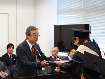 平成30(2018)年秋季学位授与式では、寺島学長より6名の修了生へ学位授与されました。